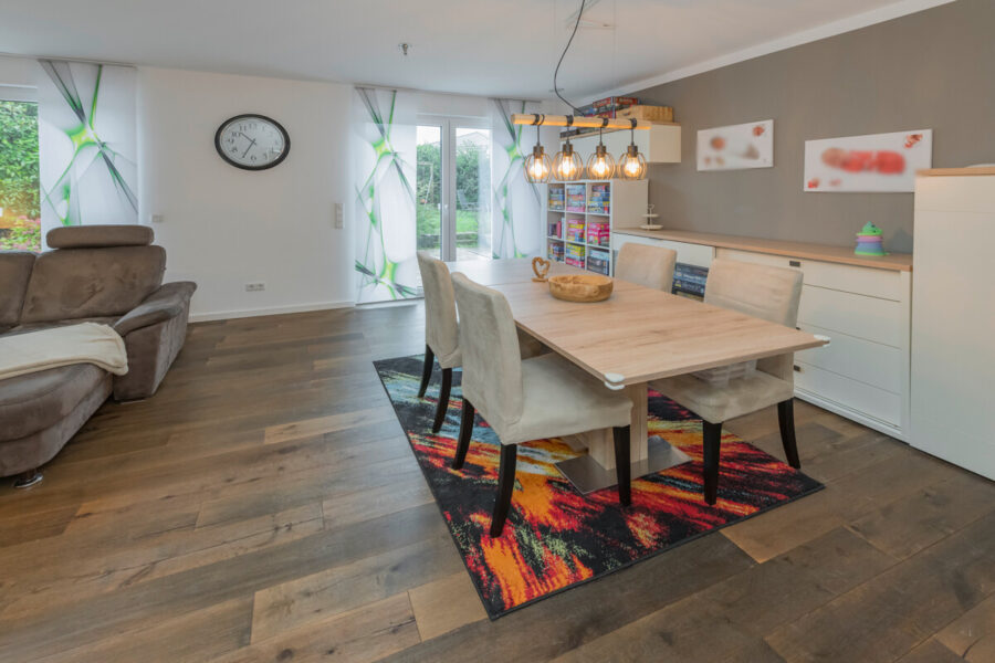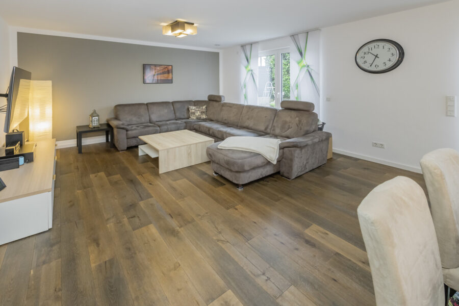 - Großzügiger Wohn- und Essbereich mit Echtholzparkett