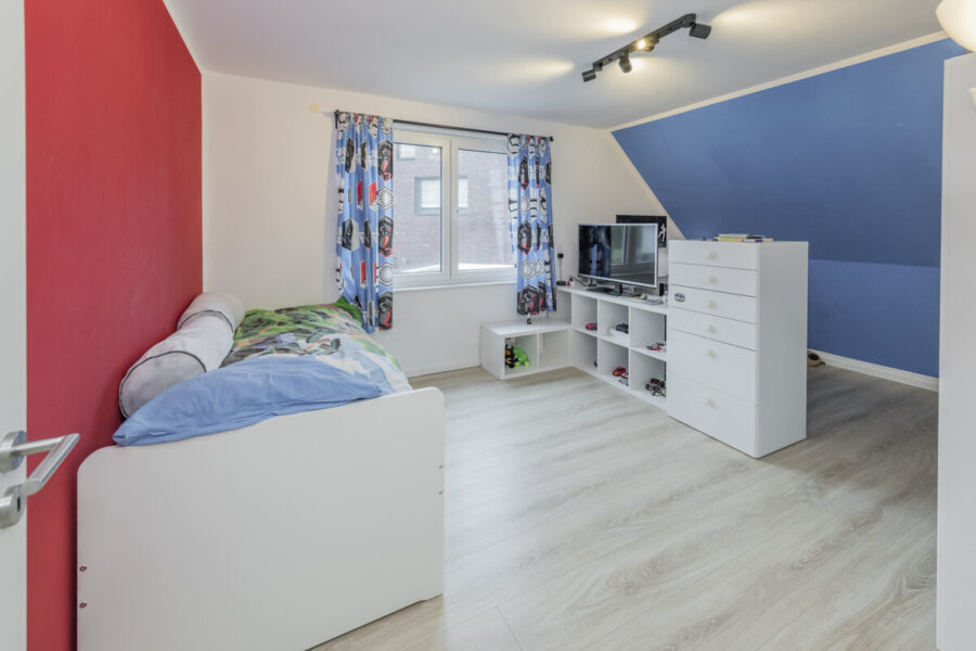 Im Obergeschoss befinden sich drei gut geschnittene Schlafzimmer, die sich flexibel als Kinderzimmer, Elternschlafzimmer oder Arbeitszimmer nutzen lassen. Das moderne Familienbad überzeugt mit einer ebenerdigen Dusche und einer Badewanne und bietet darüber hinaus Platz für eine Waschmaschine sowie einen Trockner. Das zweite Bad im Erdgeschoss verfügt ebenfalls über eine ebenerdige Dusche und sorgt für zusätzlichen Komfort im Alltag.