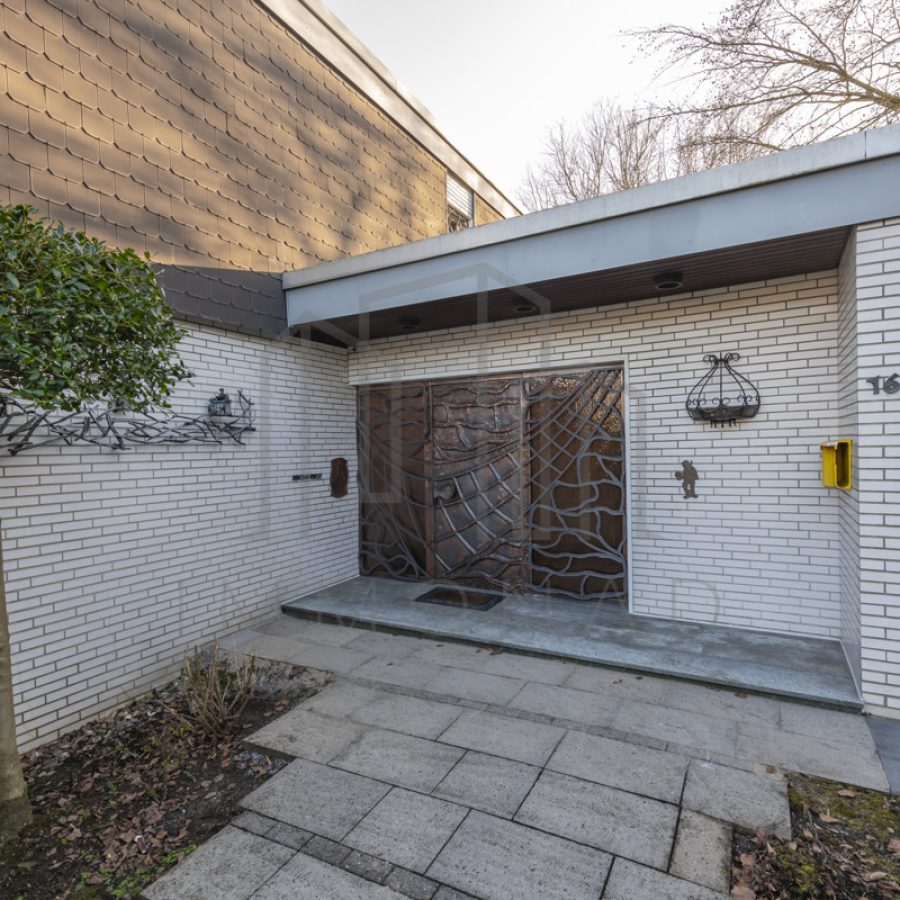Ruhig abseits der befahrbaren Straße und über einen gepflasterten Weg erreichbar, genießt das Haus besondere Privatsphäre. Eine Seite des Grundstücks grenzt direkt an einen Park, was für eine naturnahe Atmosphäre sorgt. Ein liebevoll begrünter Vorgarten empfängt Sie und unterstreicht den einladenden Charakter des Anwesens.