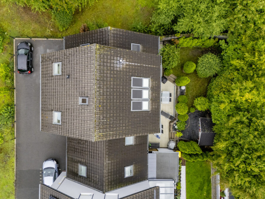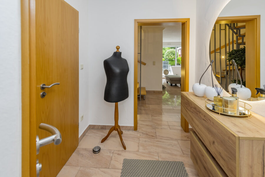 Ein architektonischer Vorteil: Wer beide Einheiten verbinden möchte, kann mit einem einfachen Durchbruch vom Treppenhaus des Haupthauses direkt ins Wohnzimmer der Einliegerwohnung gelangen – eine elegante Lösung für wachsende Familien oder ein Mehrgenerationenkonzept.