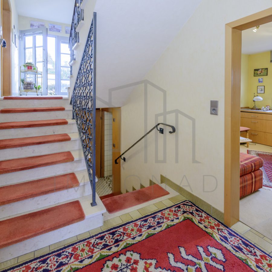 5 Zimmer, 1 Küche, Duschbad mit Fenster, 1 Gäste-WC, 2 Balkone, Fitnessraum, Infrarotkabine, Vorratskeller, Wasch- und Trockenkeller, Abstellraum, 1 Garage, 2 Stellplätze am Haus
