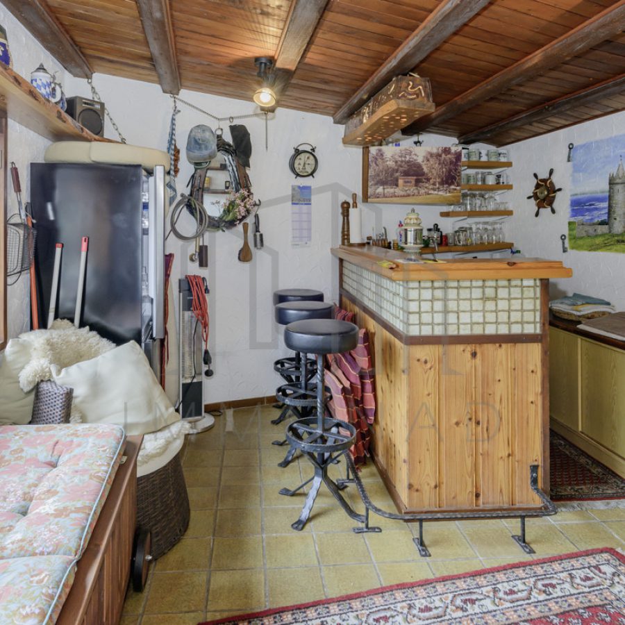 Der Garten erstreckt sich über ca. 700 m² und wurde mit viel Liebe zum Detail gestaltet. Der Weg zum Bachlauf ist durch Trittplatten einfach zu begehen, und entlang des Weges befinden sich historische Kilometersteine. Es gibt auch einen überdachten Grillplatz im Garten, wo Sie gemütliche Stunden mit der Familie verbringen können. Das Gartenhaus bietet ein umfassendes Angebot für höchsten Komfort. Selbst bei schlechter Witterung können Sie im Innenbereich gemütlich Platz nehmen. Die Bar ist mit eleganten Barhockern und atmosphärischer Beleuchtung ausgestattet. Des Weiteren verfügt das Gartenhaus über eine kleine Werkstatt, die das Herz jedes Heimwerkers höherschlagen lässt. Hier kann man sich voll und ganz dem Werkeln widmen und die Zeit vergessen. Zudem ist eine Toilette vorhanden, um den Gästen höchsten Komfort zu bieten.