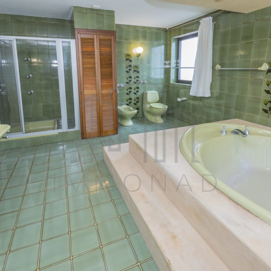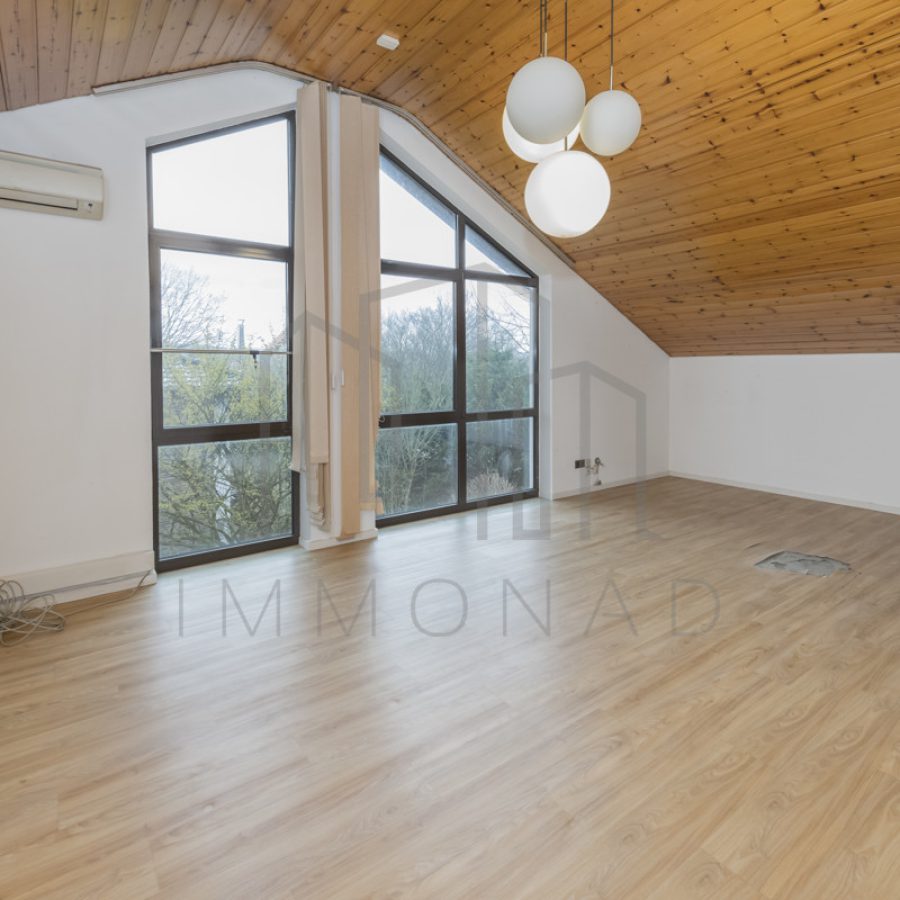Im Obergeschoss befinden sich ein Schlafzimmer, ein Büro, ein weiterer Abstellraum, eine große Diele sowie ein Badezimmer mit Dusche. Das Schlafzimmer ist ein echter Hingucker, ausgestattet mit einem Wandsafe, einer Klimaanlage und einem beeindruckenden Blick durch die große Fensterfront. Das Obergeschoss bietet zusätzliche Nutzfläche, die vielseitig genutzt werden kann – sei es als Arbeitszimmer, Spielbereich oder Stauraum für all die Dinge, die Sie lieben. Das Arbeitszimmer bietet zudem die Möglichkeit, einen weiteren Abstellraum einzurichten.