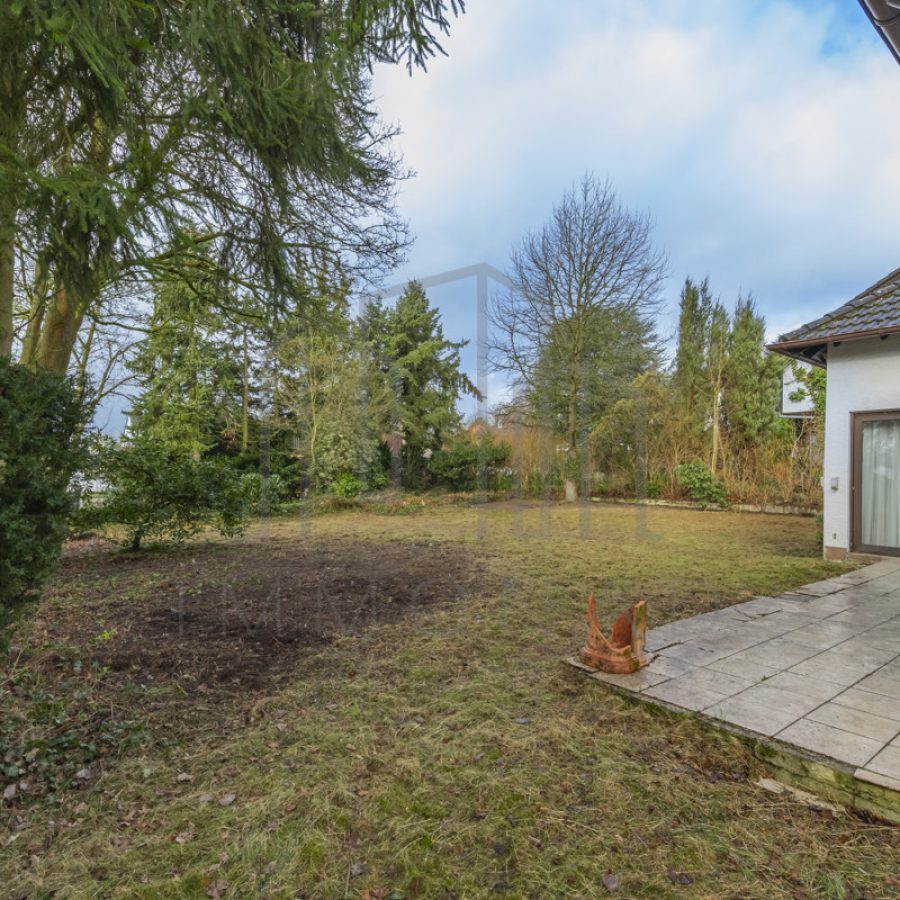Der große Garten hinter dem Haus lädt zu zahlreichen Freizeitaktivitäten ein, während die ca. 25 m² große Terrasse mit Markise ideal für Grillabende oder entspannte Stunden in der Sonne ist.