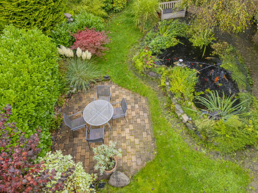 Das weitläufige Grundstück ist ein Paradies für Naturliebhaber, Kinder und Genießer. Ein liebevoll angelegter Koiteich mit einer Tiefe von ca. 1,60 m, gepflegte Hochbeete, verschiedene Sitzbereiche und schattige Plätze laden zum Entspannen, Spielen und Träumen ein. Hier entstehen Erinnerungen, beim Grillabend mit Freunden, beim Toben der Kinder oder beim ersten Kaffee am stillen Teich. Die renovierte Garage mit elektrischem Rolltor (2021) wird derzeit als gemütlicher Partyraum genutzt, ideal für Feste, gesellige Abende oder entspannte Stunden im Freundeskreis.