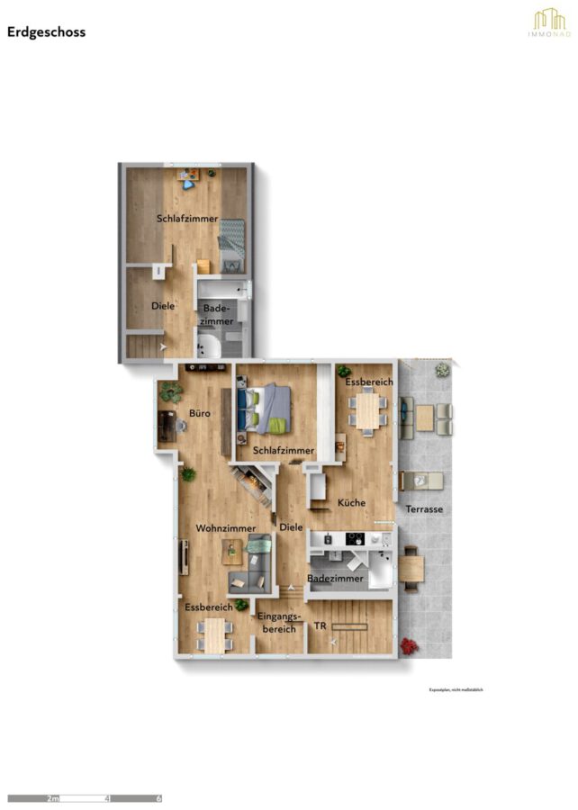 Sämtliche Angaben zu diesem Objekt dienen einer ersten Information. Das Exposé zu diesem Angebot und die darin gemachten Angaben in Wort, Bild und Werten stellen keine Beschaffenheitsvereinbarung dar. Wert- und Maßangaben sind lediglich ca.-Werte. IMMONAD GmbH übernimmt keine Haftung für die vorliegenden Angaben. Die Aufteilung entnehmen Sie bitte den beigefügten Grundrissskizzen und Visualisierungen (unverbindliche Illustration).