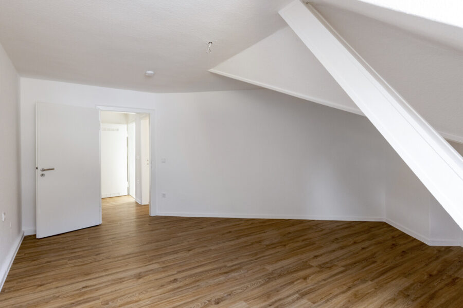 Diese schicke Wohnung im vierten Obergeschoss eines gepflegten Mehrfamilienhauses bietet auf ca. 91 m² den perfekten Platz für eine Wohngemeinschaft mit drei Personen. Einige Räume verfügen über schicke, tragende Balken, die der Wohnung einen besonderen Charme verleihen.