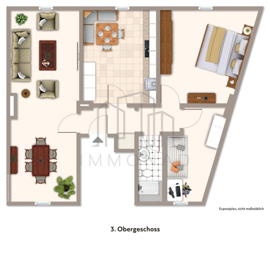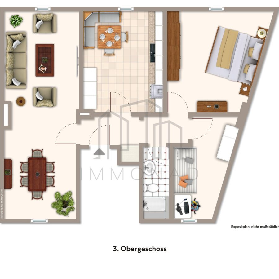 Das Exposé zu diesem Angebot und die darin gemachten Angaben in Wort, Bild und Werten stellen keine Beschaffenheitsvereinbarung dar. Die Aufteilung entnehmen Sie bitte den beigefügten Grundrissskizzen (unverbindliche Illustration).