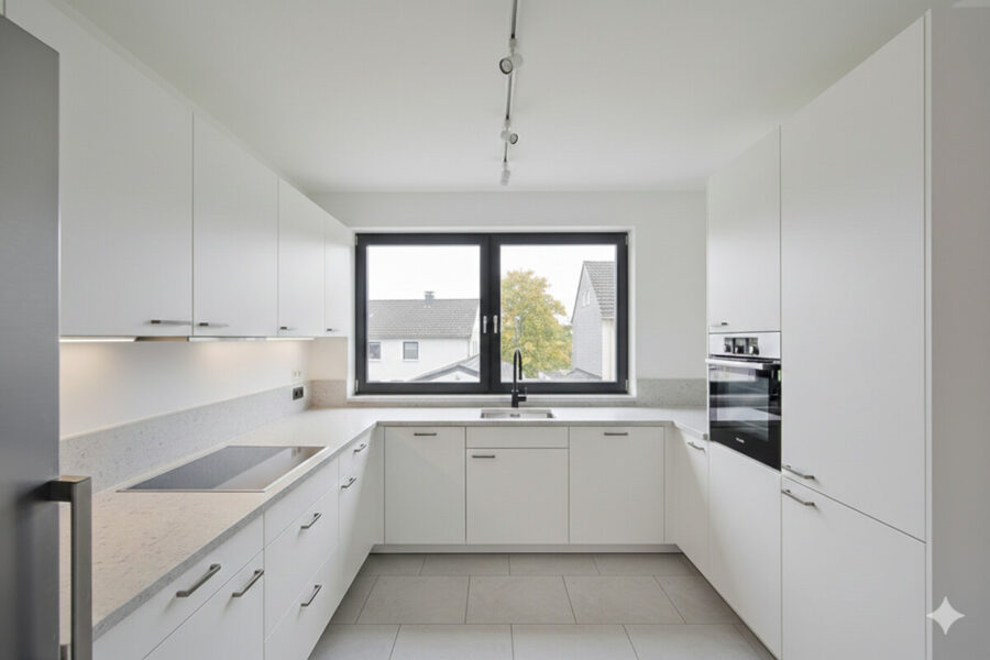 Diese ca. 99 m² große Eigentumswohnung überzeugt durch einen durchdachten Grundriss, ein angenehmes Raumgefühl und vielseitige Nutzungsmöglichkeiten. Bereits beim Betreten der Wohnung empfängt Sie eine großzügige Diele, die nicht nur ausreichend Platz für Garderobe und Stauraum bietet, sondern zugleich Raum für einen integrierten Essbereich schafft. Rechterhand schließt die Küche an, die funktional angeordnet ist und sich bei Bedarf auch offen zum Essbereich gestalten ließe – ideal für ein modernes, kommunikatives Wohnkonzept.