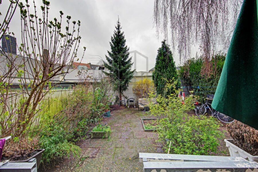 Ein separater Kellerraum bietet zusätzlichen Stauraum, und der ruhige Garten im Innenhof lädt zum Verweilen ein.
