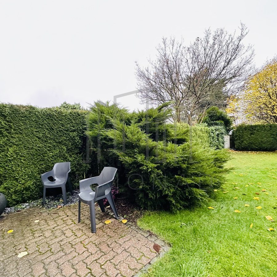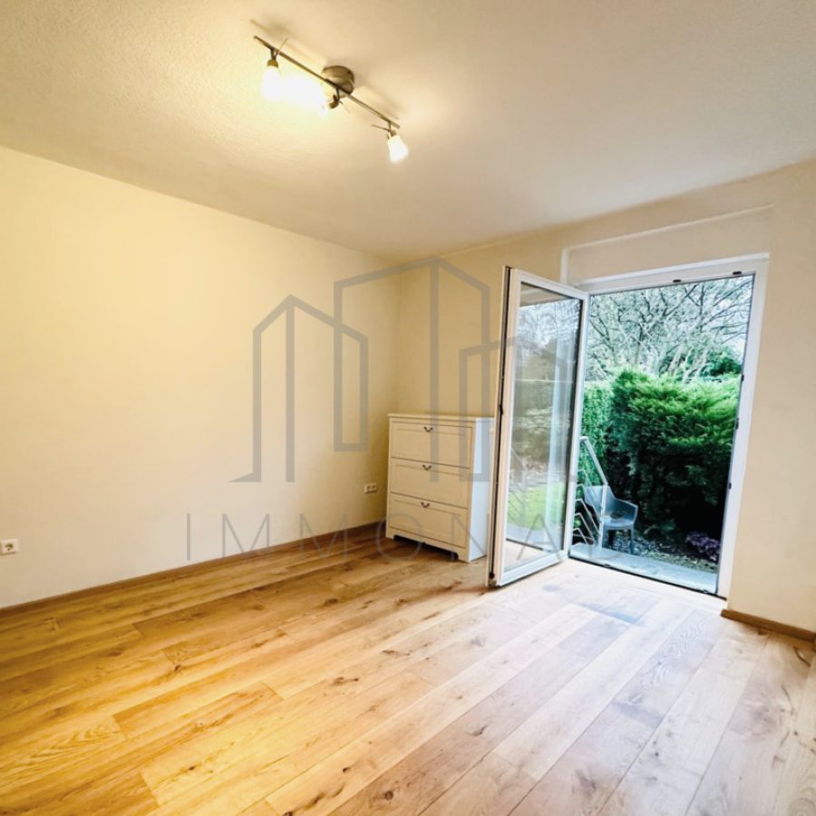 Ihr persönlicher Gartenbereich ist direkt vom Schlafzimmer zugänglich über eine stilvolle Metalltreppe. Dieser geschmackvoll gestaltete Außenbereich lädt zu entspannten Stunden im Freien ein. Bitte beachten Sie, dass der linke Teil des Gartens der Erdgeschosswohnung zugeordnet ist und regelmäßig gepflegt werden sollte.