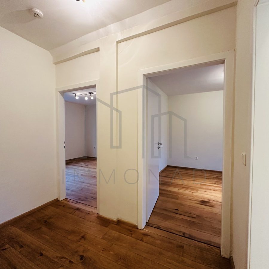 Beim Betreten der Wohnung empfangen Sie frisch aufgearbeitete, elegante Holzdielen. Über die zentrale Diele gelangen Sie in die verschiedenen Räume: die gemütliche Küche, das Wannenbad, den hellen Wohnbereich und das großzügige Schlafzimmer.