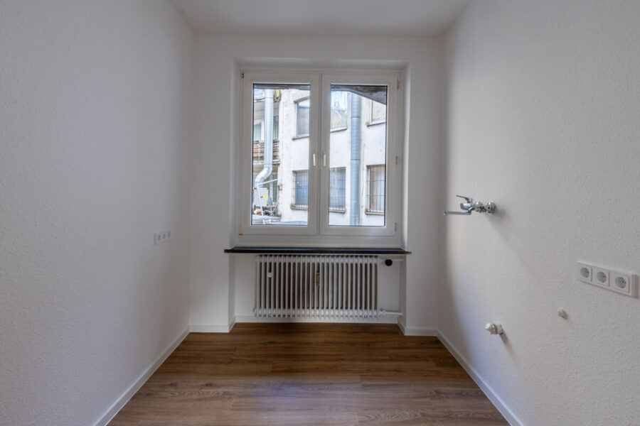 Die Wohnung wurde komplett renoviert und überzeugt durch helle, freundliche Räume sowie eine moderne, neutrale Ausstattung. Die Zimmer präsentieren sich in einem zeitlosen Stil mit weißen Wänden und Bodenbelägen in Holzoptik. Große Fensterflächen sorgen für angenehmes Tageslicht und schaffen eine warme, einladende Atmosphäre.