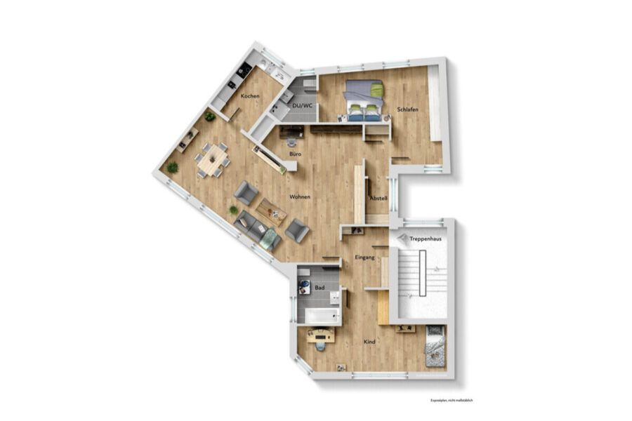Das Exposé zu diesem Angebot und die darin gemachten Angaben in Wort, Bild und Zahlen stellen keine Beschaffenheitsvereinbarung dar. Die Aufteilung entnehmen Sie bitte den beigefügten Grundrissskizzen (unverbindliche Illustration).