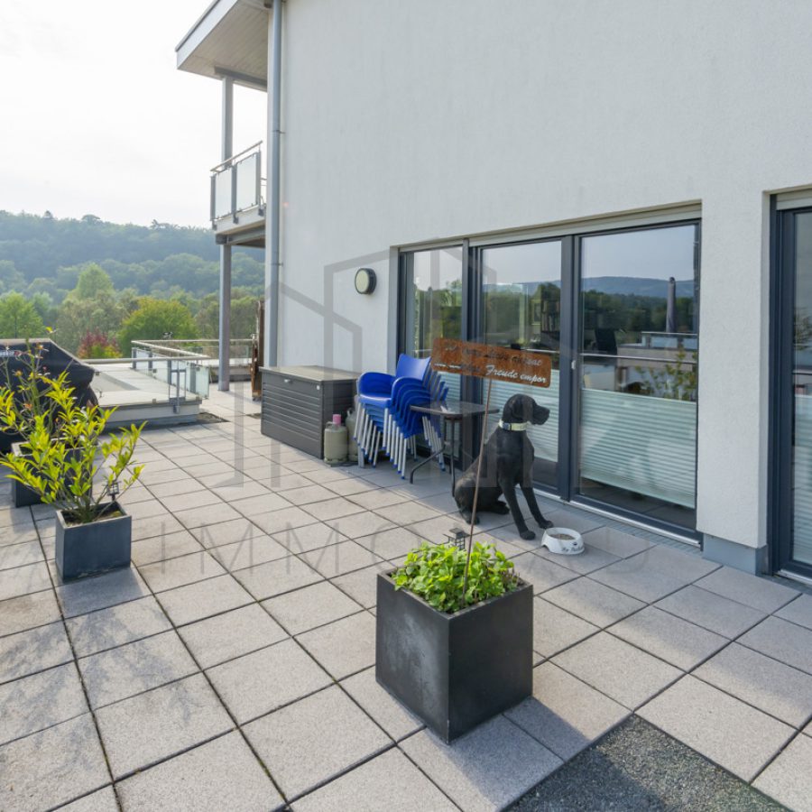 3 Zimmer, Küche, 2 Badezimmer, Gäste-WC, Dachterrasse, Balkon, Stellplatz, 3 Abstellräume